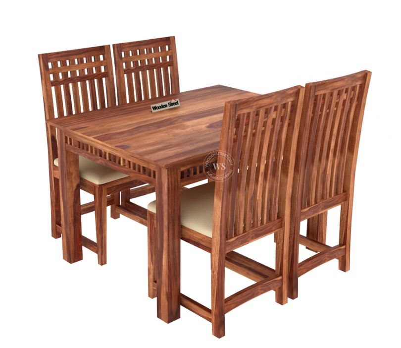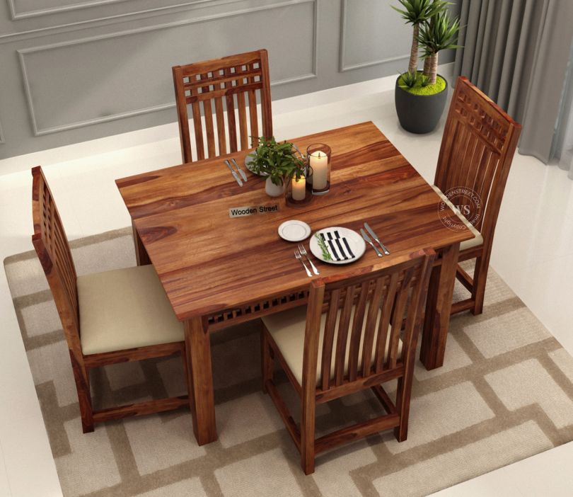 Wood, this 4 seater dining table set is sturdy in nature and offers lasting durability. Adolph Compact 4 seater dining set is available in various finish options that can be matched and inspired to fit the interior of any home.The dining table has a warm and welcoming appearance because its smooth surface accentuates the natural wood grain. The four chairs have a traditional feel, with a simple yet beautiful design and a supportive backrest and seat. This dining set’s finish options give it a classic appearance that goes with both traditional and contemporary decor.